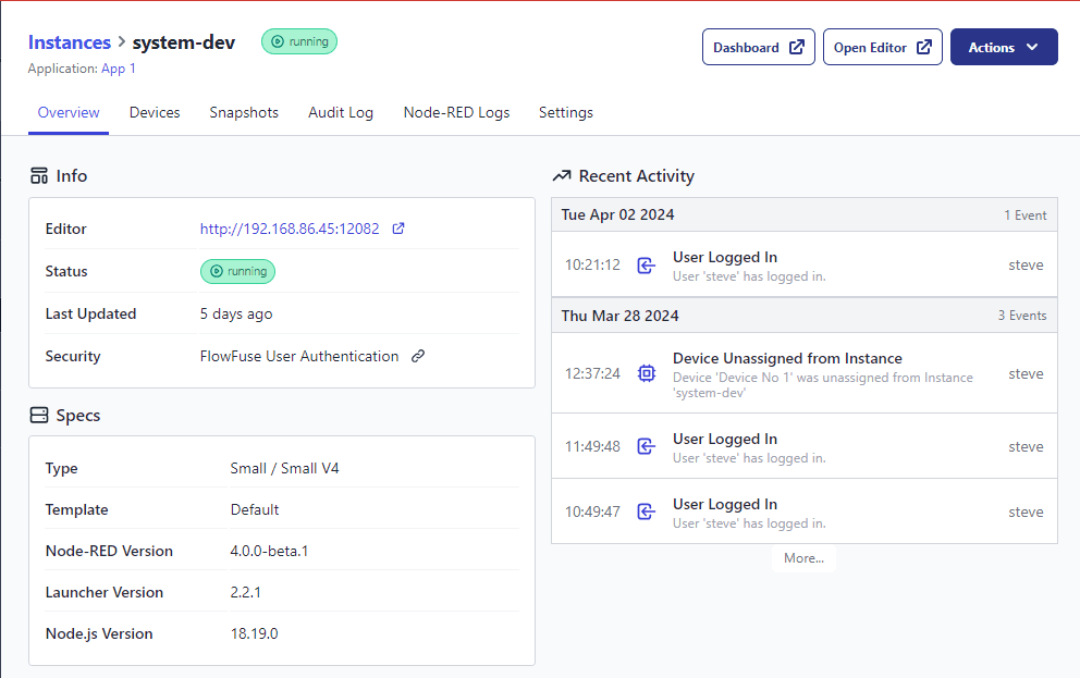 • The latest version of the FlowFuse device agent now supports remotely restarting your Node-RED flows from the FlowFuse platform. This brings it more inline with what the platform lets you do with your hosted Node-RED instances.
